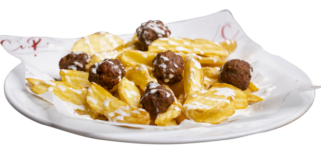 Patatine fritte, stracciata e polpettine di manzo fritte ed olio di semi. (Allergeni 1,5,7)