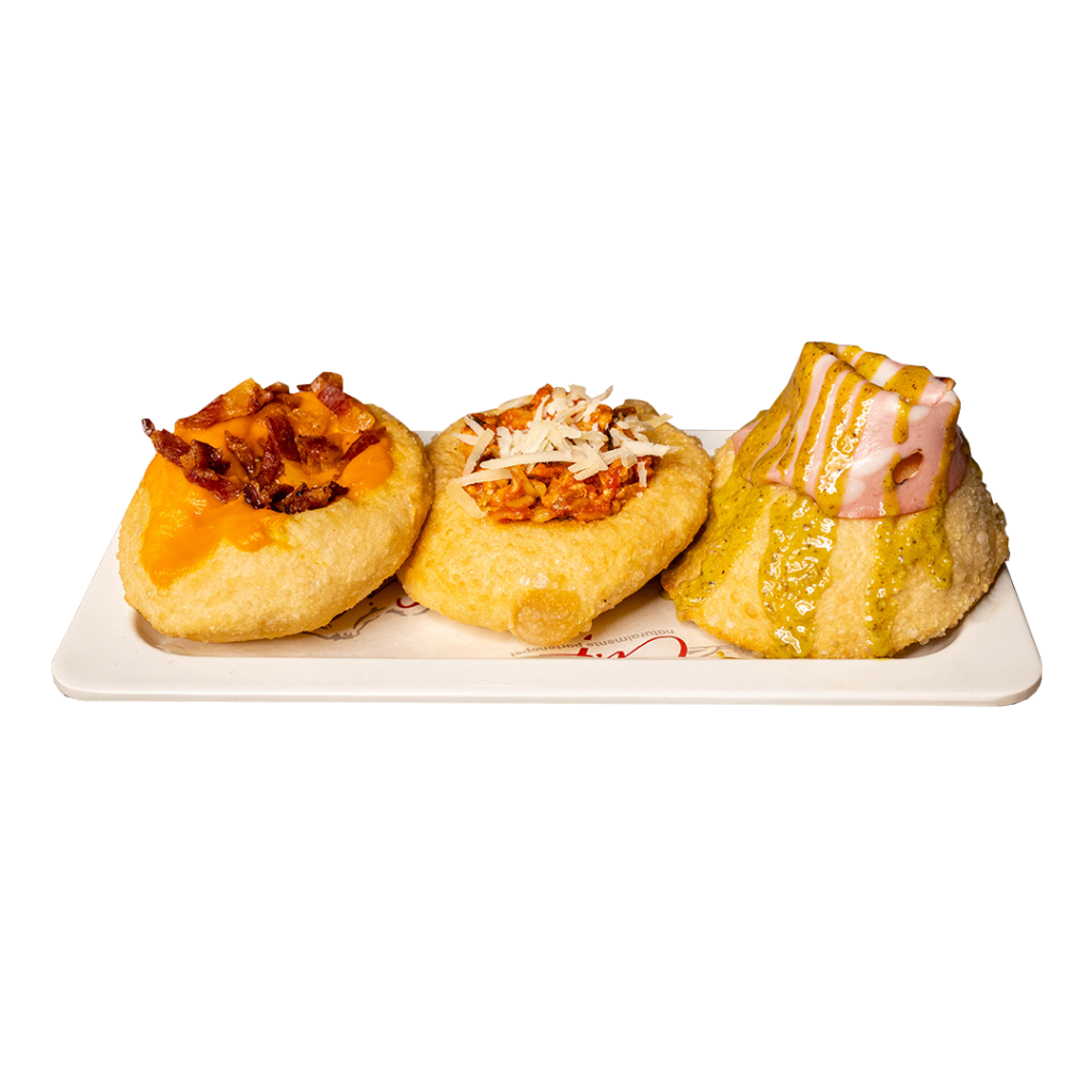 Salsiccia e friarielli, mortadella e pistacchio, classica con prosciutto e piselli. (Allergeni 1,5,7,8)